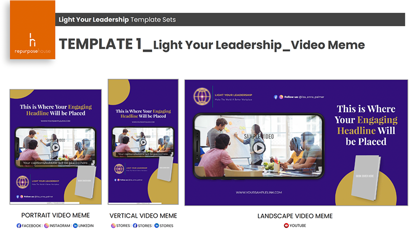 Description: This work was done by a company named Repurpose House for Light Your Leadership Inc. with Charlotte Hannah as Art Director. Charlotte's digital design brand assets are used in the design templates for the purpose of increasing exposure on Instagram, TikTok and Snapchat.